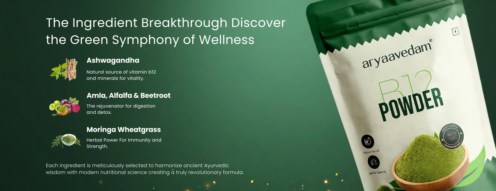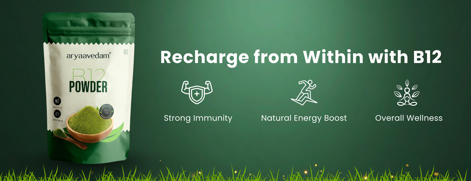 Aryavedam Plant-Based B12 Powder – Natural Blend of 6 Superfoods for Energy, Immunity & Overall Wellness (200g)