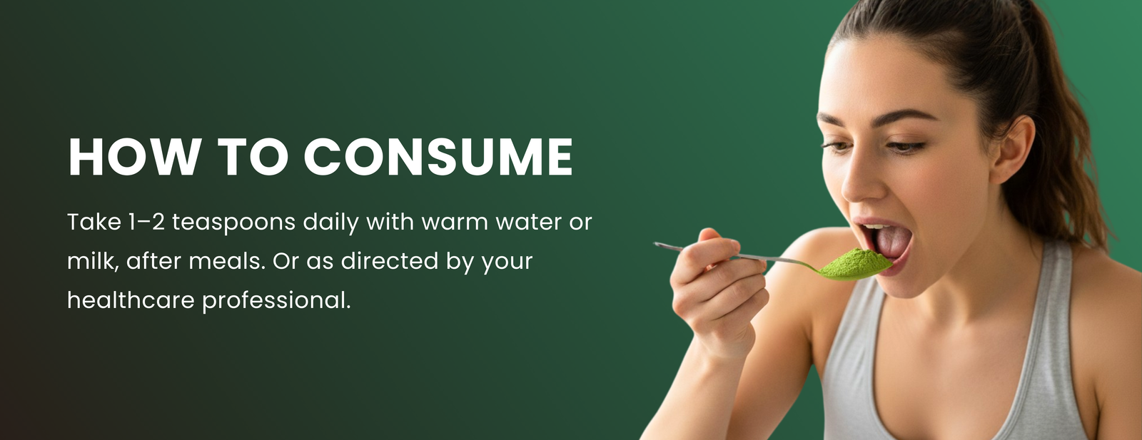 - Dosage: Mix 1–2 teaspoons with warm water or milk.